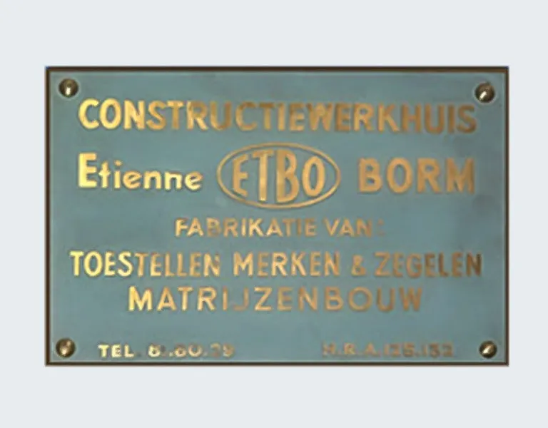 ETBO was founded in Antwerp, Belgium in 1953 by Etienne and Marie-Louise Borm. The company made precision engravings for various diplomatic offices in Belgium. Pride in workmanship, attention to detail, and a commitment to customer satisfaction were the keys to the newly formed companies success. It was through their contacts in the diplomatic world that they were inspired to immigrate to Canada, bringing their old world skills and craftmanship with them.